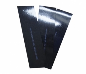 Замковая пластина представляет собой безусадочную армированную стеклосеткой полиолефиновую ленту с нанесенным на нее клеевым слоем повышенной стойкости к сдвиговым нагрузкам, применяется в основном для фиксации манжеты в кольцо (муфту) при изоляции стыков соединений стальных трубопроводов.